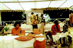 A man displaying handicrafts